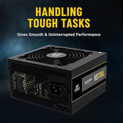 Give your PC a reliable and efficient power supply in form of the Ant Esports VS700L 700W PSU. Coming from the Value Series of Ant Esports the VS700L aims to deliver high grade quality, reliable topology and sheer performance at a pocket friendly price tag. It comes with 2 years warranty and delivers upto 80% efficiency under a variety of loads. Safety feature such as over current and over power protection are build into the unit to ensure safety of your PC components even under voltage fluctuations.