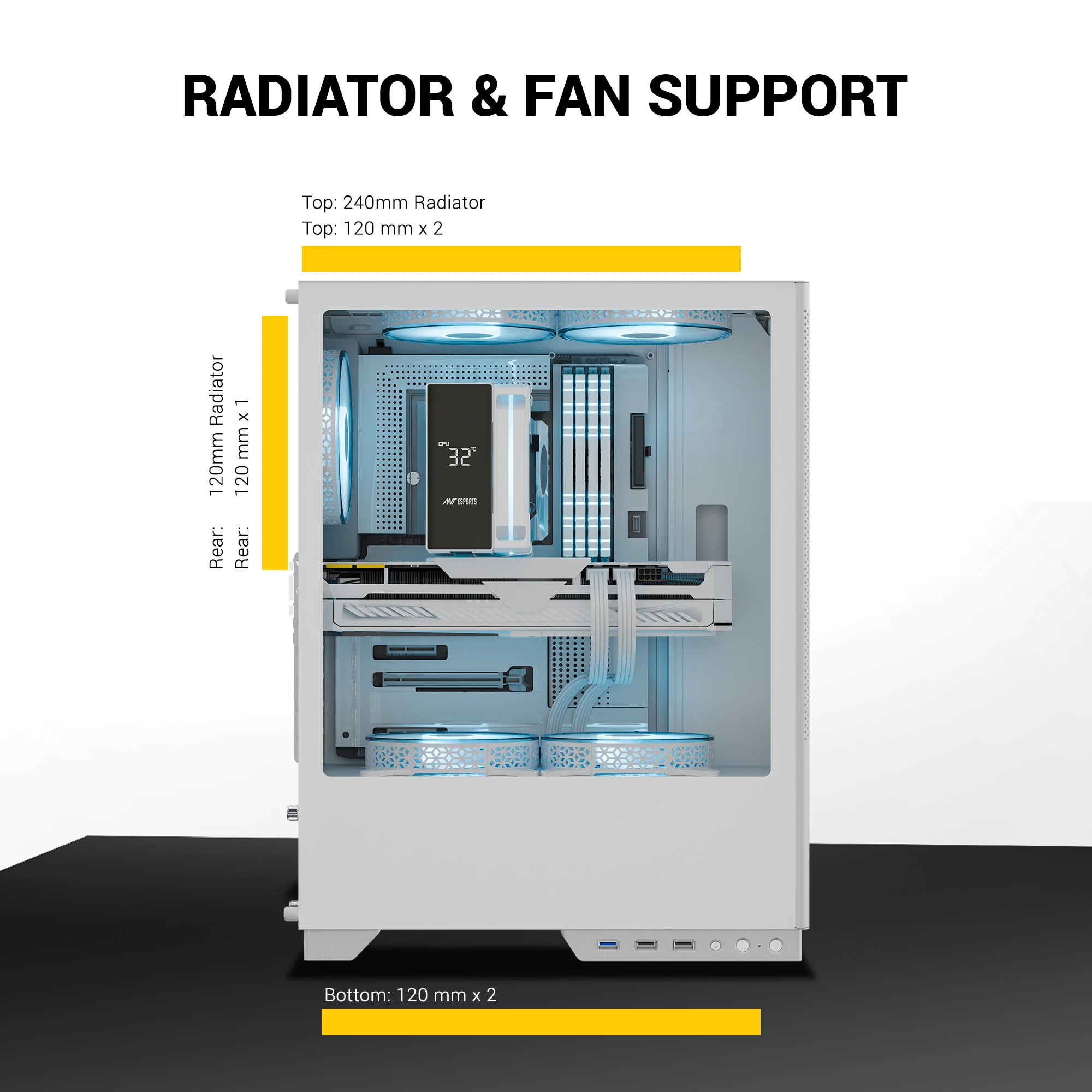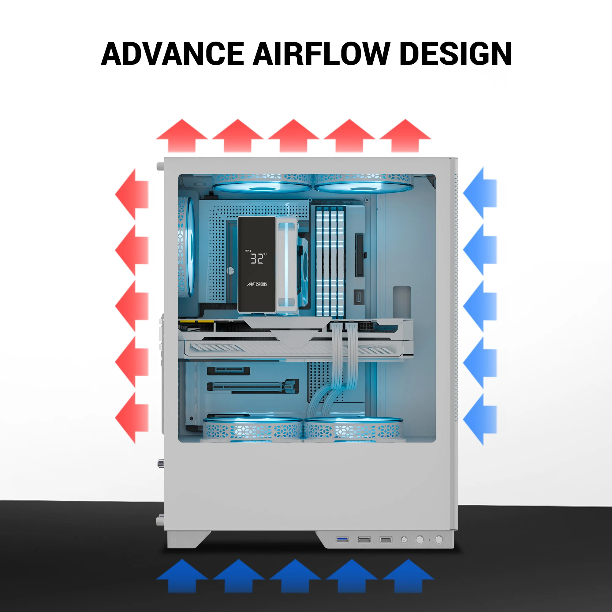 Ant Esports X2 LCD White ARGB ATX Mid Tower Case