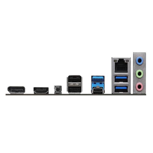 | Back Panel I/O Ports | - 2 x Antenna Mounting Points - 1 x HDMI Port - 1 x DisplayPort 1.4 - 1 x USB 3.2 Gen1 Type-C Port - 3 x USB 3.2 Gen1 Type-A Ports - 2 x USB 2.0 Ports - 1 x RJ-45 LAN Port - 1 x BIOS Flashback Button - HD Audio Jacks: Line in / Front Speaker / Microphone |