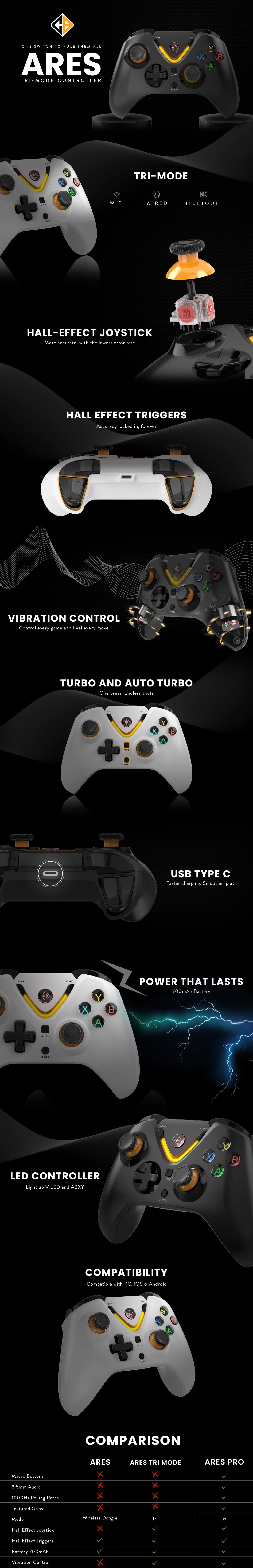 Cosmic Byte Ares Tri Mode Wireless/Bluetooth/Wired Controller, Hall Effect Joystick, White