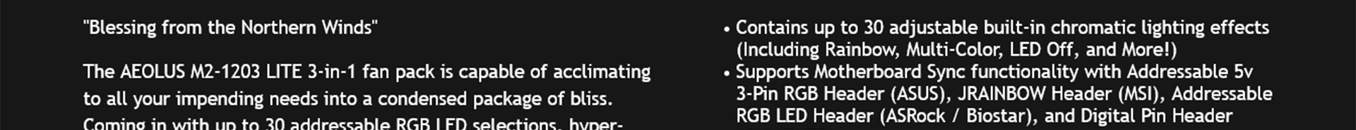 | Motherboard Sync Rated Voltage | 5V 3-pin RGB header Only |